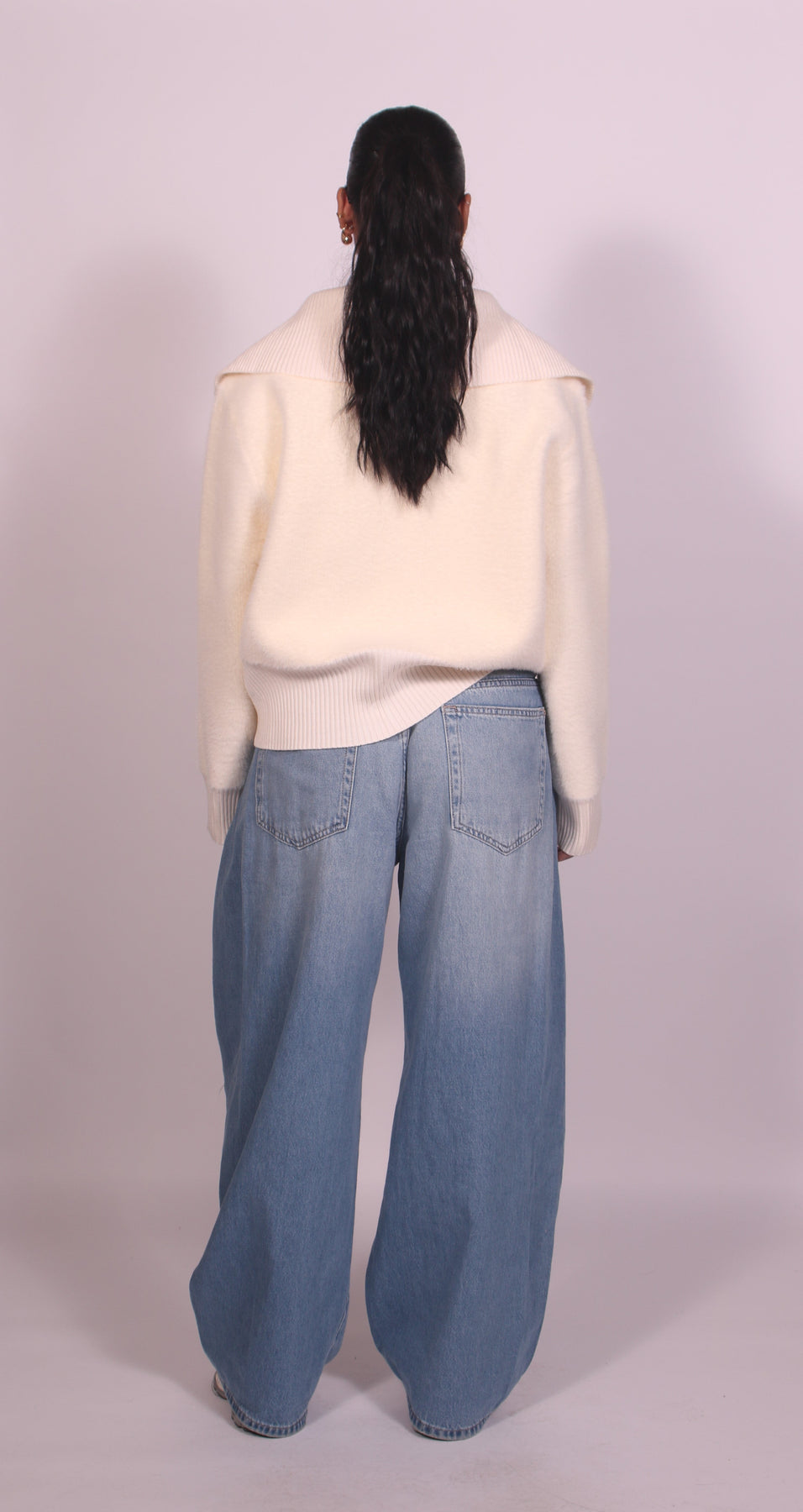 Het model is 1.65 lang en draagt het Niva vest in maat One Size.